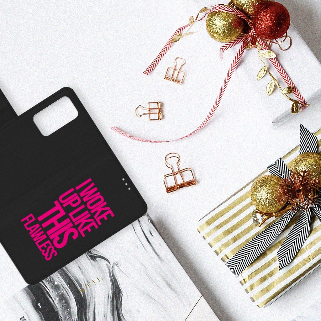 Met dit zwarte Huawei P40 Pro Hoesje met naam met paarse tekst heb je een geweldige bescherming van je smartphone in handen. Dit zwarte hoesje met Woke Up tekst is een must voor jouw smartphone. Met dit design hoesje tekst val je ook zeker op. Je weet ook zeker dat het hoesje exclusief is. Het design is gemaakt door B2C Telecom. Het hoesje heeft verschillende vakjes en is aan alle zijden bedrukt. Ook het lipje aan de buitenkant kan worden bedrukt. De houder is van TPU, de buitenzijde van PU-leer. We willen je er ook op wijzen dat je zelf een hoesje kunt ontwerpen, met eigen beelden en teksten. Met onze Phone Case Designer kun je zelfs opvallende effecten, patronen en clip arts aan het ontwerp toevoegen.
