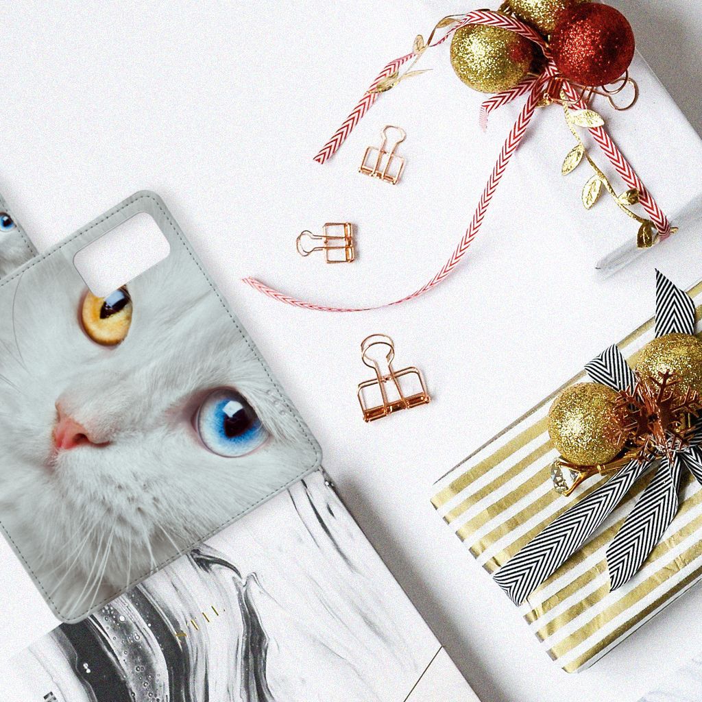 Huawei P40 Pro Telefoonhoesje met magnetisch lipje als sluiting Witte Kat