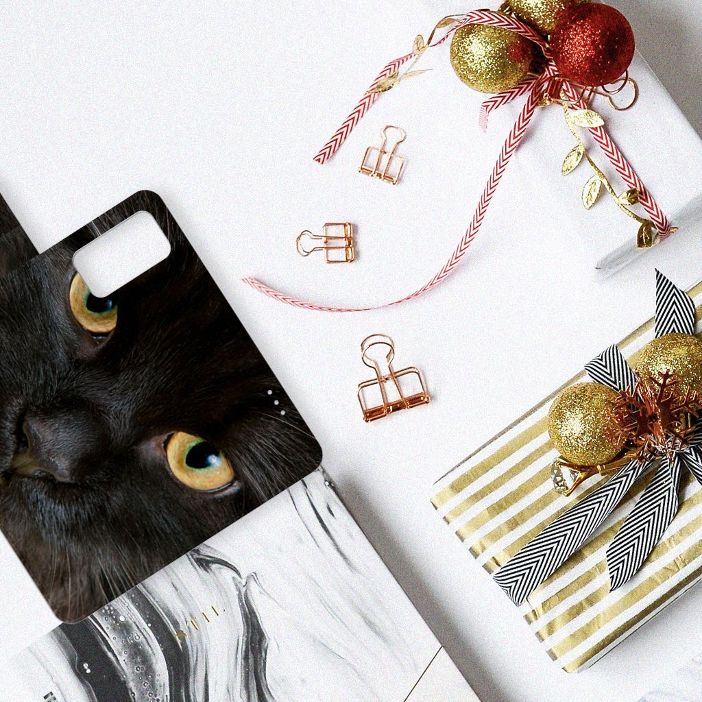 Huawei P40 Pro Telefoonhoesje sluit met magnetische sluitclip Design Zwarte Kat