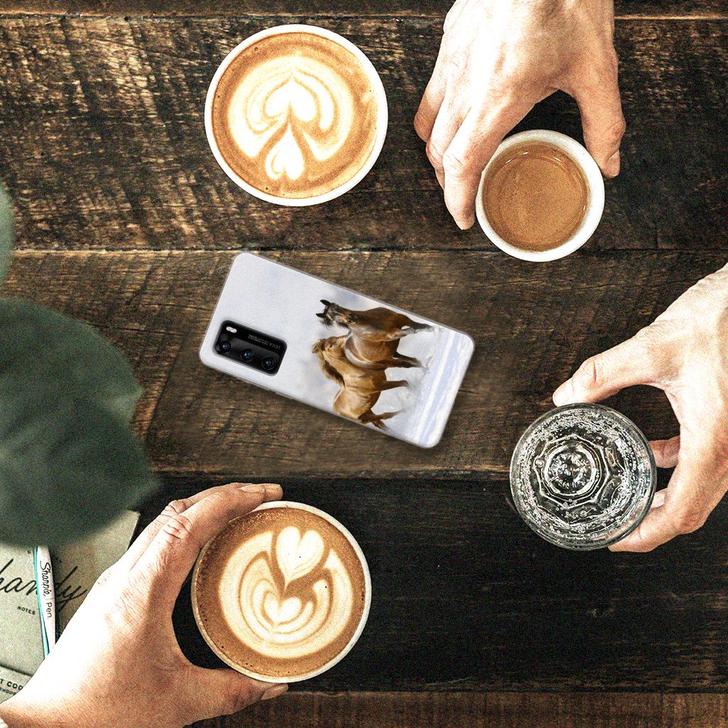 Voor de paardenliefhebbers onder ons hebben we onze collectie uitgebreid met dit design hoesje met print van paarden. Vroeger hield de mens vooral werkpaarden, inmiddels hebben we vriendschap gesloten met het paard. Vandaar dat het ook een favoriet dier is op onze smartphonehoesjes, zoals deze tpu case. Een TPU Hoesje voor de Huawei P40 met Paarden is niet alleen super mooi en chique, maar ook nog eens zeer flexibel. Verder is de case schokabsorberend en heeft het opstaande randen. Zie je liever je eigen paard terug op een hoesje. Dat kan! Door zelf een uniek hoesje te ontwerpen, met eigen foto’s en teksten. De TPU case wordt aan de bovenzijde bedrukt, de zijkanten blijven transparant.