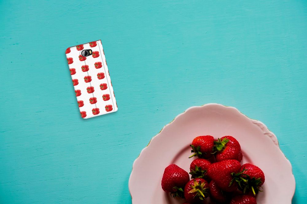 Er zit pit in jouw Huawei Y5 2 | Y6 Compact Flip Style Cover dankzij dit design met rode paprika’s. Paprika’s zijn er in allerlei kleuren en vormen en ze hebben gemeen dat ze heel erg gezond zijn. De rode paprika’s op deze case staan op een grijs met witte geblokte achtergrond en vormen een opvallende verschijning. Heb jij ooit iemand in je nabije omgeving rond zien lopen met een design hoesje met rode paprika’s? Waarschijnlijk niet. Dit stand hoesje met rode paprika’s beschermt jouw telefoon aan alle zijden en beschikt over een opbergvakje voor een pasje of briefgeld. De case sluit perfect af met de magneet aan de binnenzijde. Zeker weten dat je met dit hoesje met rode paprika’s een smartphone accessoire te pakken hebt waarmee je jezelf in de schijnwerpers zet. De houder aan de binnenzijde van de stand case met rode paprika’s is van TPU. Als je andere kleuren paprika’s op je hoesje wilt, raden we je aan ons assortiment design hoesjes te bekijken of zelf een hoesje te ontwerpen.