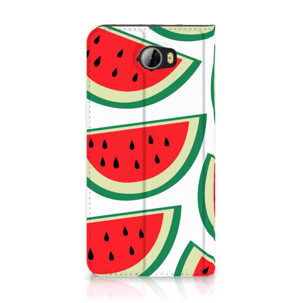 Watermeloenen zijn uitstekende dorstlessers, misschien dat je daarom juist in de zomermaanden extra enthousiast raakt van dit design hoesje Watermelons. Jij blijft gezond als je zo nu en dan een watermeloen neemt, jouw smartphone blijft in tact als je er deze Huawei Y5 2 | Y6 Compact Flip Style Cover omheen doet. De stand case beschermt jouw telefoon aan alle kanten en beschikt over een 1 opbergvakje en een speciale standaard. Het hoesje wordt afgesloten met een magneet aan de binnenzijde. De houder aan de binnenzijde is van TPU. Je kunt ook kiezen voor andere soorten fruit op je hoesje. Kijk maar eens naar onze andere design hoesjes op onze website.