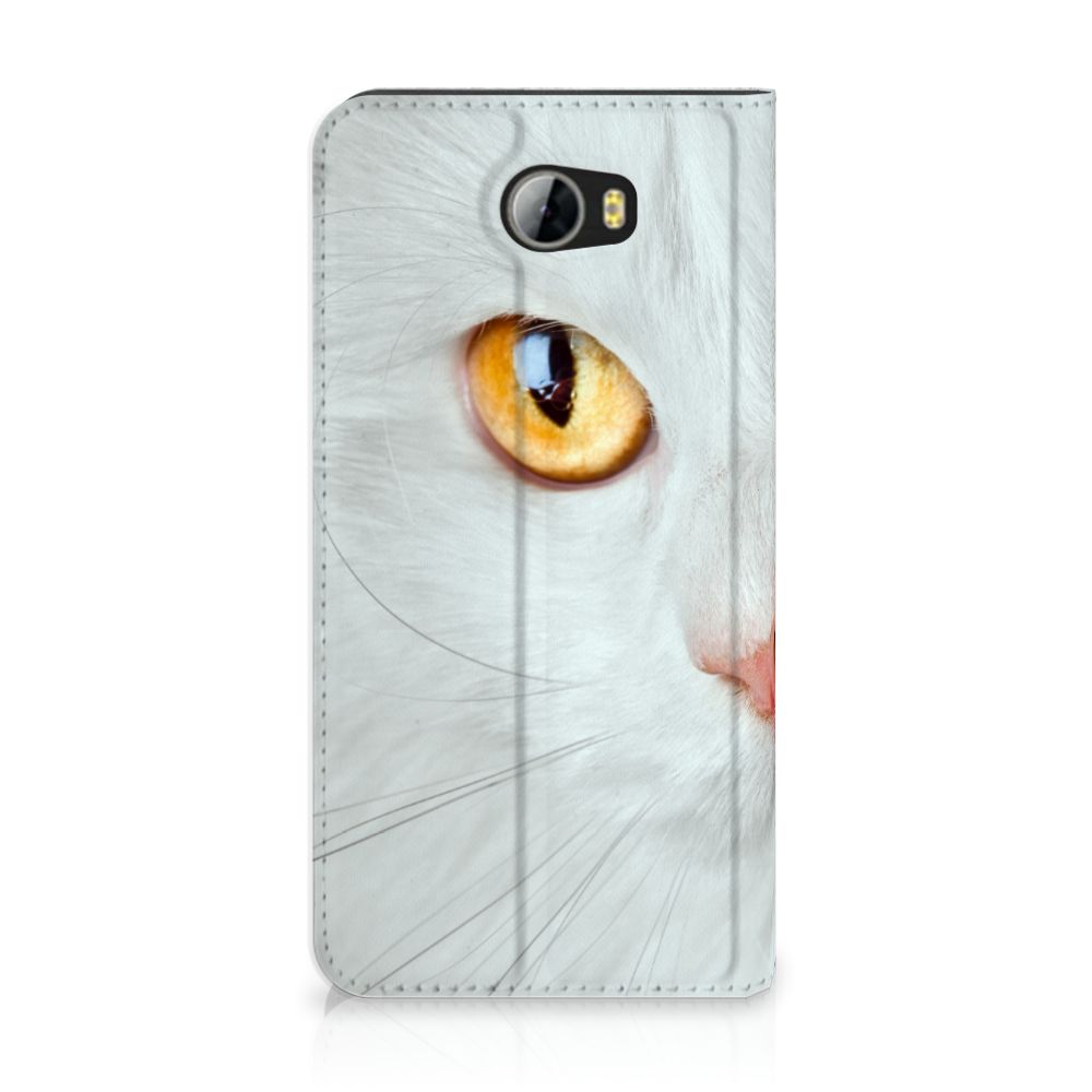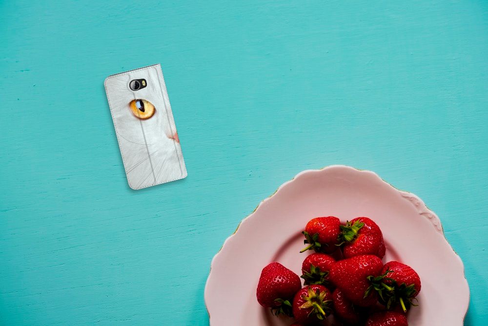 Witte katten zijn natuurlijk extra speciaal, vandaar we een exemplaar op een design hoesje hebben gezet. Een witte kat schijnt trouwens ook slechter te kunnen horen dan katten met een andere kleur. Deze witte kat staat op een zeer prominente wijze op een stand case. Deze stand case met witte kat ziet er geweldig uit en is voorzien van verschillende uitsparingen en een speciale standaard. Een Huawei Y5 2 | Y6 Compact Hoesje maken met witte kat beschermt jouw smartphone perfect. Alle zijden van de case zijn bedrukt. Jouw smartphone wordt erg duurzaam met dit design hoesje. Het TPU aan de binnenzijde is zeer flexibel en het pu-leer oogt chique. Verder heeft de case een houder voor bijvoorbeeld je rijbewijs aan de binnenkant.