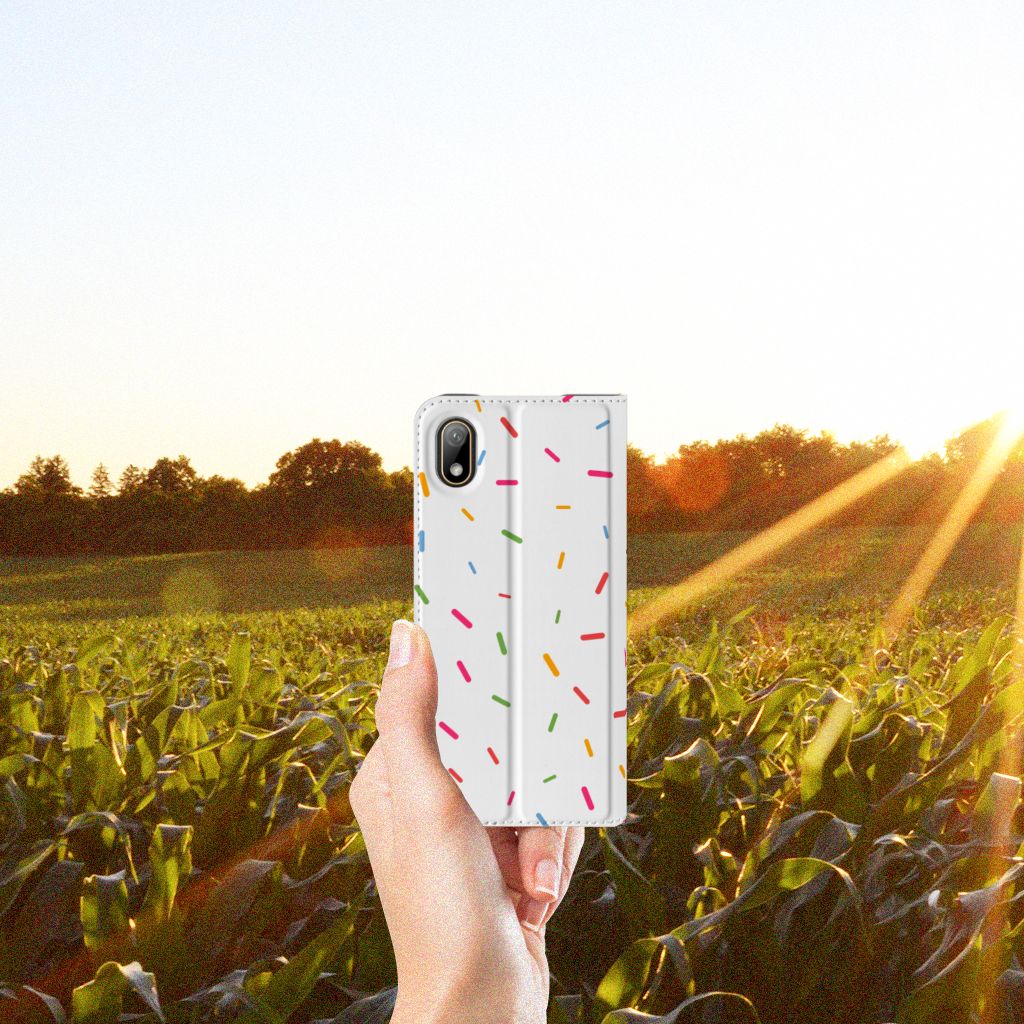 De cartoon met Donut op dit design hoesje geeft jouw smartphone een grappige en vrolijke uitstraling. De Huawei Y5 (2019) Flip Style Cover zorgt ervoor dat je je schouders op zult halen als je telefoon een keer op de grond valt. Omdat er geen schade zal optreden kun jij je weg weer heel makkelijk vervolgen. De grappige Donut Care stand case is een zeer populair product. Allereerst is het nergens anders te krijgen. Het design is namelijk van de hand van onze eigen ontwerper. Daarnaast zal de case jouw smartphone aan alle zijden beschermen. Ook heeft het Donut Care hoesje een vakje aan de binnenzijde en een speciale standaard. Ook kun je je eigen unieke hoesje ontwerpen, met eigen cartoons, foto’s en teksten. De houder aan de binnenzijde van de Donut Care case is van TPU, de buitenzijde van PU leer.