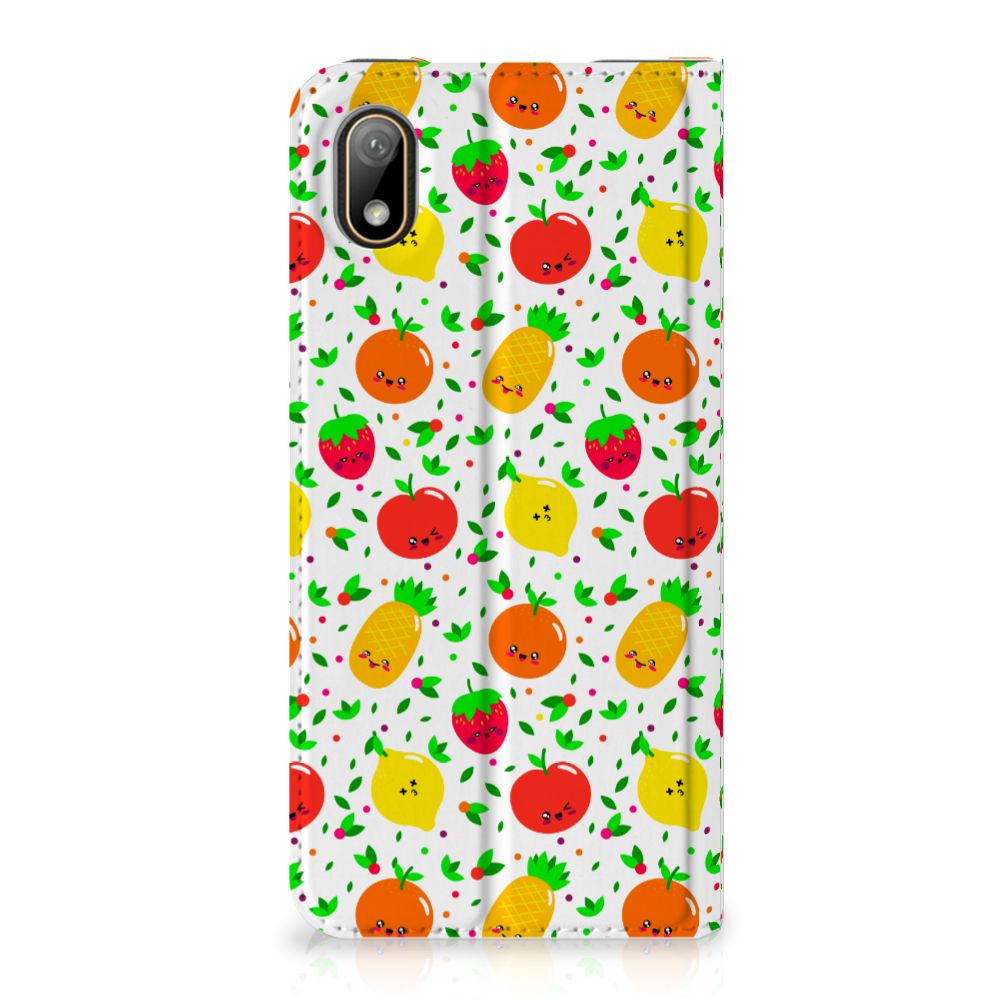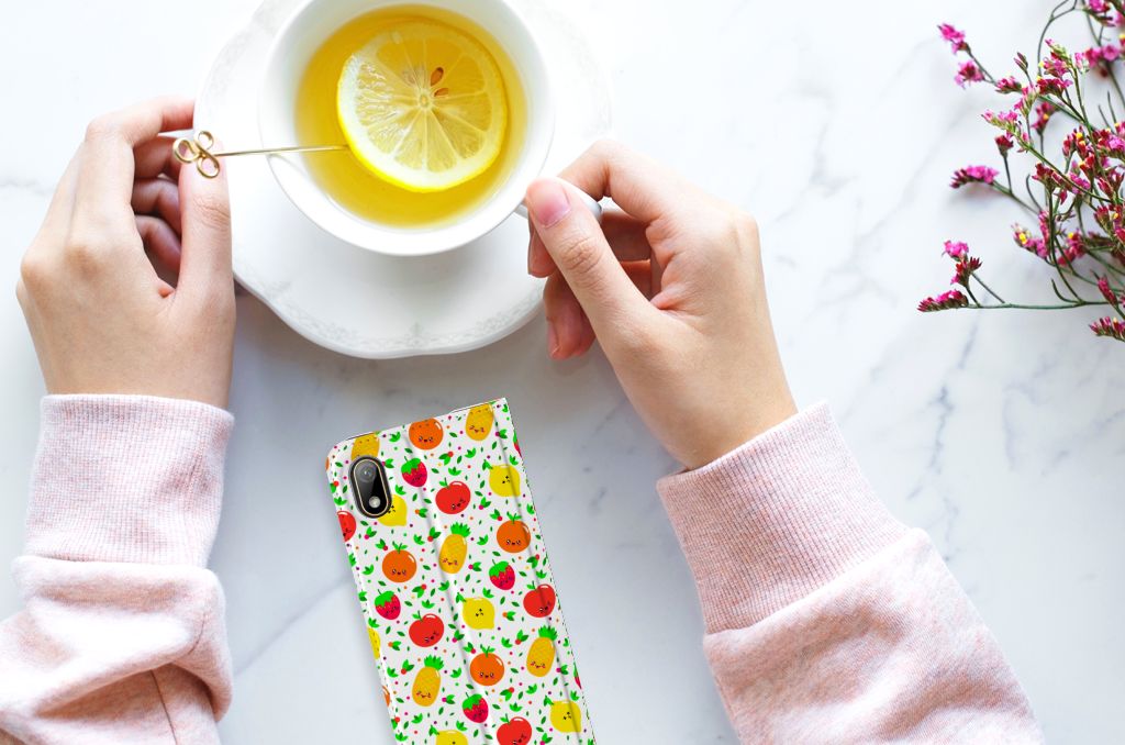 Een fris, fruitig en vrolijk hoesje, deze case met afbeeldingen van aardbeien, ananassen, appels, sinaasappels en citroenen. Minstens twee stuks fruit per dag wordt aanbevolen als dagelijkse hoeveelheid voor de mens. Dit verkleint de kans op allerlei ziekten. Dus met het aantal stukken fruit op de Huawei Y5 (2019) Flip Style Cover zou je wel een maandje zoet moeten zijn. Met het hoesje zelf kun je je hele leven doen, dit is namelijk niet stuk te krijgen. Dit komt door het sterke en flexibele materiaal waarvan het gemaakt is. De vrolijk stemmende case het desing Fruits maakt jouw telefoon dus zeer duurzaam. Zorg ervoor dat jouw smartphone gezond blijft en kies voor dit hoesje met frivool fruit. Een stand case met fruit beschermt jouw telefoon aan alle kanten en beschikt over een 1 opbergvakje en een speciale standaard. Het hoesje met fruit wordt afgesloten met een magneet aan de binnenzijde. De houder aan de binnenzijde is van TPU.