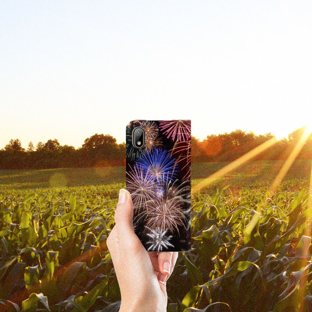 Deze Huawei Y5 (2019) Hippe Standcase levert gegarandeerd Vuurwerk op. Kijk alleen al eens naar de print van siervuurwerk, in zeer veel verschillende kleuren. Als je dit hoesje ziet kun je bijna niet geloven dat sommige gemeenten in Nederland overwegen om vuurwerk te verbieden. Er gebeuren weliswaar ongelukken mee, maar zoiets schitterends als op deze stand case met vuurwerk wil je toch gewoon niet missen. Bovendien beschermt dit hoesje jouw smartphone aan alle kanten. Alle zijden van deze case worden bedrukt en met een speciale standaard is het erg prettig om filmpjes te bekijken. De case wordt aan de binnenzijde met een magneet afgesloten en de houder aan de binnenzijde is van TPU. Onder alle omstandigheden zal deze case met 1 opbergvakje perfect functioneren, ook als je met nieuwjaar vuurwerk aan het afsteken bent. Zorg dan overigens wel dat je zelf ook voldoende afgeschermd bent van het vuurwerk.