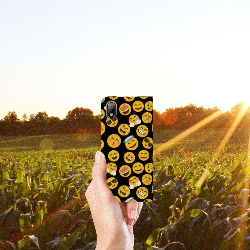 Je gebruikt ze waarschijnlijk dagelijks: emoji’s. Daarom hebben we besloten ze op een design hoesje te zetten. De kleurrijke, vaak gele emoticons maken chatberichten net wat spontaner. Dat hebben we allemaal te danken aan Japan, waar de emoji’s die we zo goed kennen vandaan komen. Ondertussen zijn er meer dan 1800! Deze passen natuurlijk niet allemaal op een Huawei Y5 (2019) Hoesje met Magneet, maar we hebben de meeste gebruikte exemplaren erop gezet. Deze stand case is voorzien van een houder voor een pasje. Super handig. De telefoon zelf zit in een houder van TPU, dat zeer flexibel is. We gebruiken emoji’s vaak om complete woorden te vervangen. Dit smartphone hoesje zegt dan ook meer dan duizend woorden kunnen. De stand case heeft een magnetische sluiting aan de binnenzijde en wordt aan alle kanten bedrukt met emoji’s. Tevens is er een standaard.