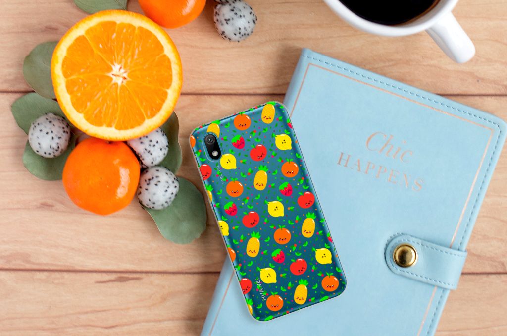 Een fris, fruitig en vrolijk hoesje, deze case met afbeeldingen van aardbeien, ananassen, appels, sinaasappels en citroenen. Minstens twee stuks fruit per dag wordt aanbevolen als dagelijkse hoeveelheid voor de mens. Dit verkleint de kans op allerlei ziekten. Dus met het aantal stukken fruit op de Huawei Y5 (2019) Siliconen Case zou je wel een maandje zoet moeten zijn. Met het hoesje zelf kun je je hele leven doen, dit is namelijk niet stuk te krijgen. Dit komt door het sterke en flexibele materiaal waarvan het gemaakt is. De vrolijk stemmende case het desing Fruits maakt jouw telefoon dus zeer duurzaam. Zorg ervoor dat jouw smartphone gezond blijft en kies voor dit hoesje met frivool fruit. Een tpu case met fruit wordt alleen aan de bovenkant bedrukt en is zeer flexibel. De randen van het hoesje blijven transparant en worden niet bedrukt met het fruit.