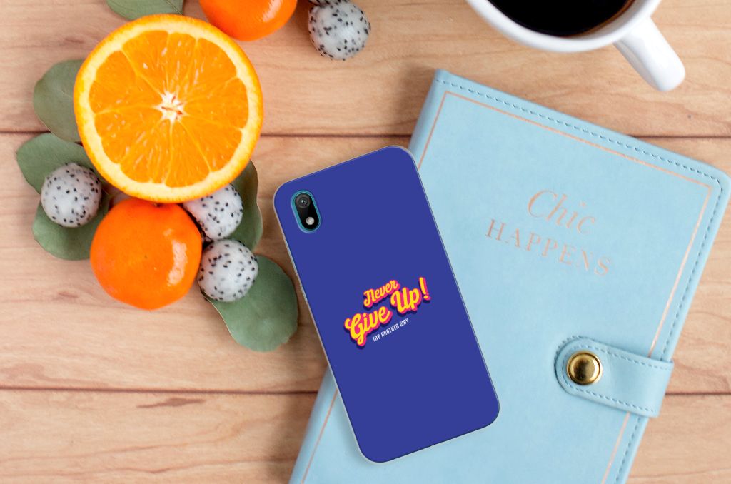 Ben je op zoek naar een uniek telefoonhoesje voor je Huawei Y5 (2019)? Dan ben je bij B2C Telecom aan het juiste adres! Speciaal voor jou hebben we dit prachtige Never Give Up design in onze collectie hoesjes opgenomen. Het design wordt bedrukt op een Siliconen hoesje met naam en is gemaakt van flexibel rubber. Het design wordt alleen aan de bovenkant van het hoesje bedrukt en de randen blijven transparant. Aan de zijkanten zijn uitsparingen gemaakt waardoor je met gemak alle knoppen en poorten kunt bedienen. Wij adviseren om dit hoesje in combinatie met een screenprotector te gebruiken voor een langere levensduur van je telefoon. Wil je dit design hoesje nog iets extra's geven? Voeg dan gratis je naam of een quote toe! Is dit design hoesje toch niet helemaal wat je zocht? Ontwerp dan zelf een hoesje in ons ontwerpprogramma.