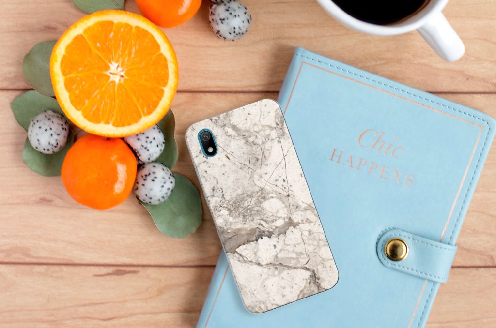 Dit design hoesje met Marmer Beige is voor de artistieke personen onder ons. De Grieken en Romeinen wisten het steen al te waarderen door het als bouw- en bekledingsmateriaal toe te passen. Naast het witte Carrara marmer met haar zacht grijze geaderde belijning zijn de diverse marmersoorten in een ruim kleurenpallet te krijgen. We hebben verschillende kleuren op design hoesjes gezet, zoals in dit geval beige marmer. Dit is een Huawei Y5 (2019) TPU Siliconen Hoesje met marmer in beige kleur. Het marmer wordt bedrukt op de voorkant van een tpu case, die beschikt over opstaande randen aan de voorkant en goed combineert met een screenprotector. De rijkheid aan kleuren en varianties in afwerking geeft designers de vrijheid om met marmer hele mooie architectonische projecten te realiseren. Wij hebben onze designer ook veel vrijheid gegeven. Het resultaat zie je terug in deze tpu case met beige marmer, die jouw smartphone goed beschermt. De zijkanten van de case worden niet bedrukt met marmer.