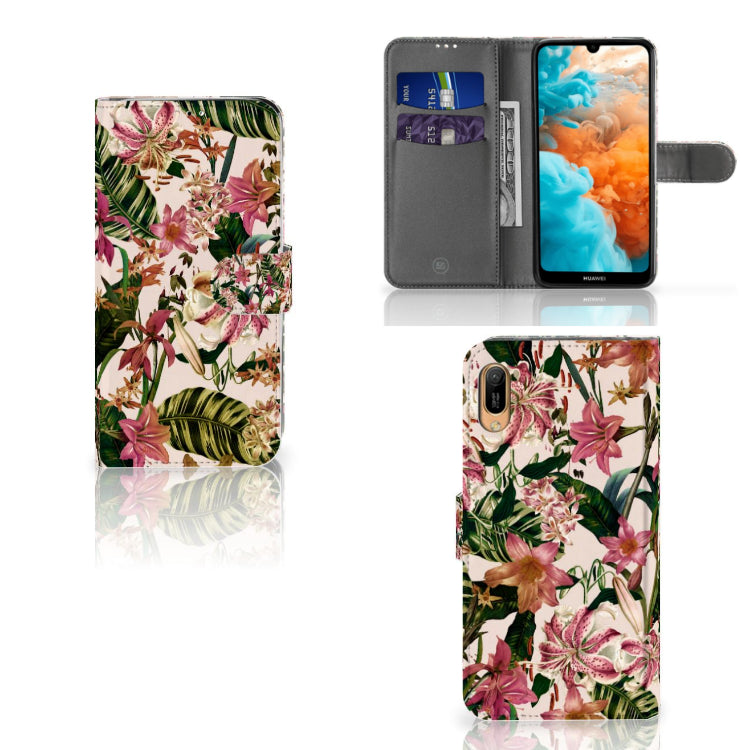 Huawei Y6 (2019) Hoesje met ruimte voor pasjes Flowers