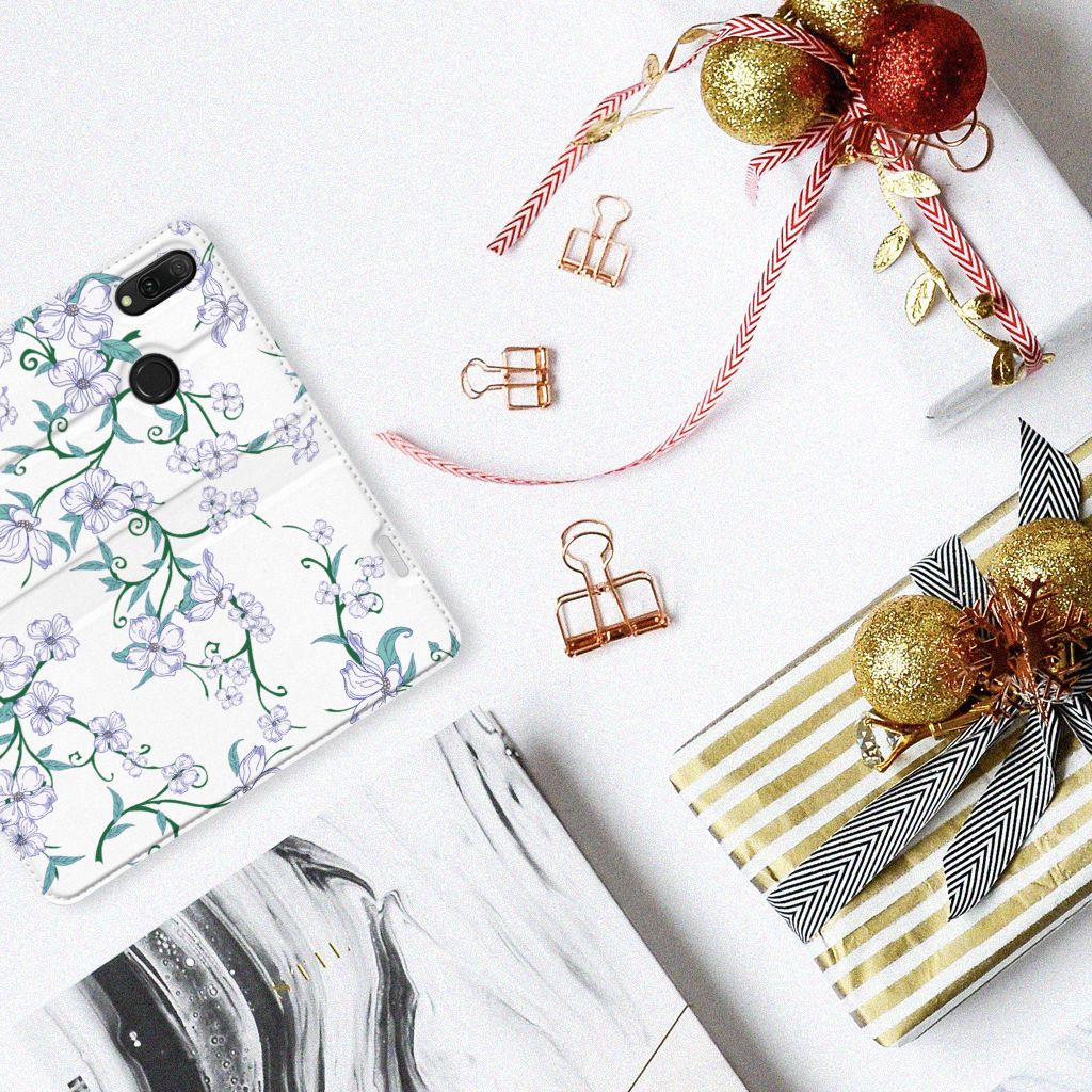 Huawei Y7 (2019) Hoesje Orchidee Blauw - Cadeau voor je Moeder