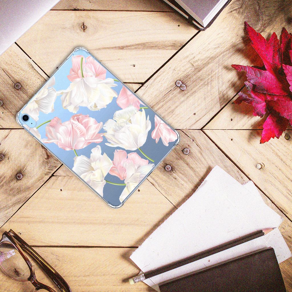 Een bosje bloemen doet een mens (en zijn tablet) goed. De witte en roze bloemen op deze iPad (2022) 10.9 Siliconen Hoesje geven jouw tablet een zeer mooie uitstraling. Je wordt er ook meteen een stuk rustiger van als je aan het appen of aan het bellen bent. Valt dan je tablet op de grond, dan zal er dankzij deze case met het design Lovely Flowers ontstaan. Helemaal niet als je er een screenprotector bij hebt gekocht. Onze hoesjes met roze en witte bloemen zien er zeer prettig uit en zijn heel praktisch, getuige onder meer de opstaande randen en het flexibele materiaal. Alleen de achterkant van het hoesje wordt bedrukt met roze en witte bloemen en de randen blijven transparant.