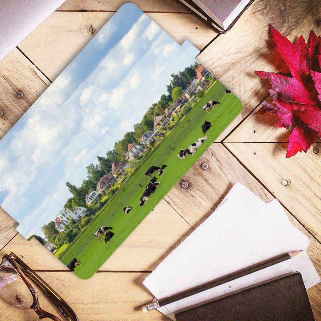 Ben je op zoek naar een uniek tablethoesje met standaard voor je iPad Air (2020/2022) 10.9 inch? Dan ben je bij B2C Telecom aan het juiste adres! Speciaal voor jou hebben we dit prachtige Koeien design in onze collectie hoesjes opgenomen. Het design wordt bedrukt op een Flip Case en is gemaakt van hoge kwaliteit PU-leer. Wat dit hoesje zo uniek maakt is dat alle zijden van het hoesje worden bedrukt. De voor- achterkant, rugzijde en het lipje! Zo'n uniek tablethoesje vind je nergens! De houder is gemaakt van TPU en heeft de nodige uitsparingen zodat je met gemak alle knoppen en poorten kunt bedienen. Daarnaast kun je je tablet eenvoudig in twee standen neerzetten. Erg fijn als je graag leest of filmpjes kijkt op de tablet. Door het dunne design en magnetische sluiting neem je je tablet gemakkelijk overal mee naar toe. Wil je dit tablethoesje nog iets extra's geven? Voeg dan gratis je naam of een quote toe! Is dit design hoesje toch niet helemaal wat je zocht? Ontwerp dan zelf een hoesje in ons ontwerpprogramma.