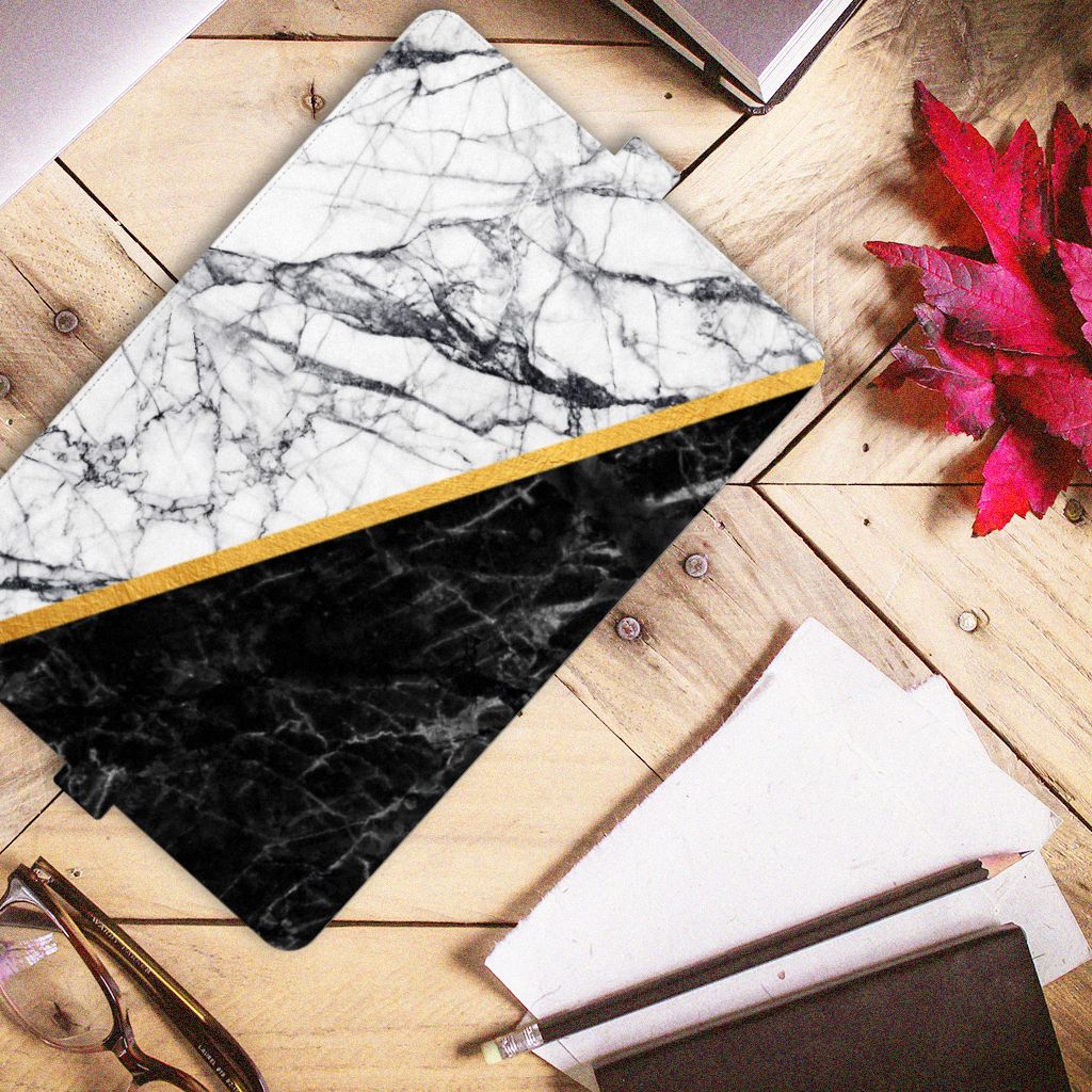Ben je op zoek naar een uniek tablethoesje met standaard voor je iPad Air (2020/2022) 10.9 inch? Dan ben je bij B2C Telecom aan het juiste adres! Speciaal voor jou hebben we dit prachtige Marble White Black design in onze collectie hoesjes opgenomen. Het design wordt bedrukt op een Leuk Tablet hoesje en is gemaakt van hoge kwaliteit PU-leer. Wat dit hoesje zo uniek maakt is dat alle zijden van het hoesje worden bedrukt. De voor- achterkant, rugzijde en het lipje! Zo'n uniek tablethoesje vind je nergens! De houder is gemaakt van TPU en heeft de nodige uitsparingen zodat je met gemak alle knoppen en poorten kunt bedienen. Daarnaast kun je je tablet eenvoudig in twee standen neerzetten. Erg fijn als je graag leest of filmpjes kijkt op de tablet. Door het dunne design en magnetische sluiting neem je je tablet gemakkelijk overal mee naar toe. Wil je dit tablethoesje nog iets extra's geven? Voeg dan gratis je naam of een quote toe! Is dit design hoesje toch niet helemaal wat je zocht? Ontwerp dan zelf een hoesje in ons ontwerpprogramma.