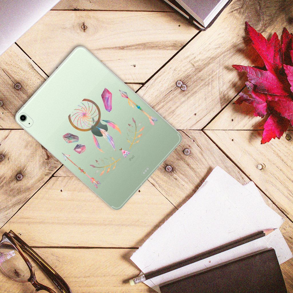 Een dromenvanger werd lang geleden al door een indianenvolk in Noord-Amerika gebruikt om nare dromen te weren. Nu nog hangen mensen over de hele wereld dromenvangers boven hun bed. Maar ook op een telefoonhoesje staat zo’n boho dreamcatcher heel mooi. Dit mooie design dat bestaat uit een tipi, pijlen en dromenvanger heeft veel verschillende prachtige kleuren. Maar omdat het ontwerp minimalistisch en klein is, is het design toch subtiel te noemen. Dit ontwerp staat op een Tablet Back Cover voor je iPad Air (2020/2022) 10.9 inch. De hoes voor de tablet is gemaakt van TPU, een flexibel maar heel erg sterk plastic dat niet kapot te krijgen is. We adviseren om dit type hoesje te combineren met een screenprotector, zodat je scherm ook goed beschermd is tegen krassen en beschadigingen.