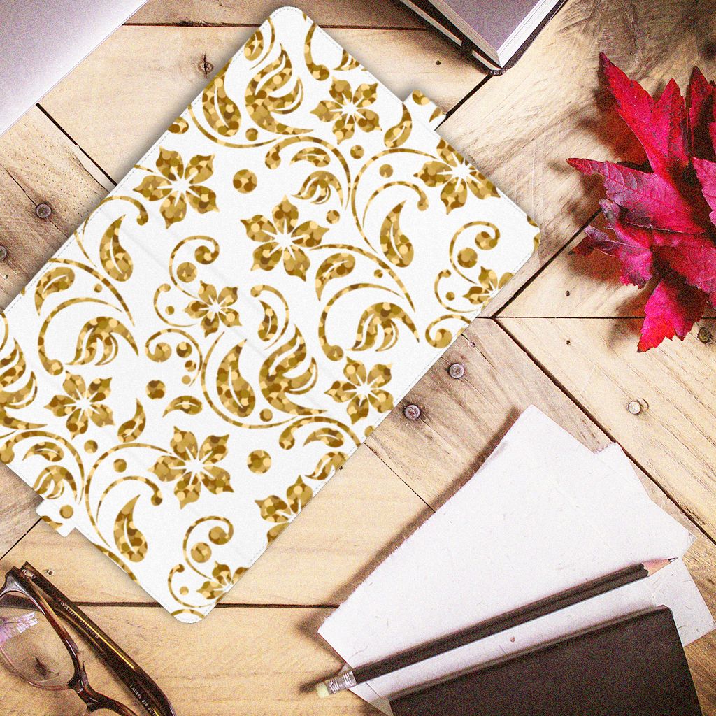 Ben je op zoek naar een uniek tablethoesje met standaard voor je iPad Air (2020/2022) 10.9 inch? Dan ben je bij B2C Telecom aan het juiste adres! Speciaal voor jou hebben we dit prachtige Gouden Bloemen design in onze collectie hoesjes opgenomen. Het design wordt bedrukt op een Tablet Cover en is gemaakt van hoge kwaliteit PU-leer. Wat dit hoesje zo uniek maakt is dat alle zijden van het hoesje worden bedrukt. De voor- achterkant, rugzijde en het lipje! Zo'n uniek tablethoesje vind je nergens! De houder is gemaakt van TPU en heeft de nodige uitsparingen zodat je met gemak alle knoppen en poorten kunt bedienen. Daarnaast kun je je tablet eenvoudig in twee standen neerzetten. Erg fijn als je graag leest of filmpjes kijkt op de tablet. Door het dunne design en magnetische sluiting neem je je tablet gemakkelijk overal mee naar toe. Wil je dit tablethoesje nog iets extra's geven? Voeg dan gratis je naam of een quote toe! Is dit design hoesje toch niet helemaal wat je zocht? Ontwerp dan zelf een hoesje in ons ontwerpprogramma.