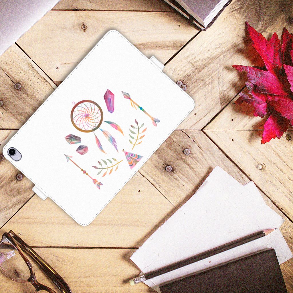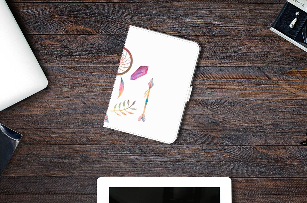 Een dromenvanger werd lang geleden al door een indianenvolk in Noord-Amerika gebruikt om nare dromen te weren. Nu nog hangen mensen over de hele wereld dromenvangers boven hun bed. Maar ook op een telefoonhoesje staat zo’n boho dreamcatcher heel mooi. Dit mooie design dat bestaat uit een tipi, pijlen en dromenvanger heeft veel verschillende prachtige kleuren. Maar omdat het ontwerp minimalistisch en klein is, is het design toch subtiel te noemen. Dit ontwerp staat op een Hippe Tablet Hoes voor je iPad Mini 6 (2021). Het tablethoesje met standaard is gemaakt van PU-leer en heeft een tablethouder binnenin van TPU. Je kunt de hoes in twee verschillende standen horizontaal neerzetten. Dat is super handig bij het kijken van video’s. Zo heb je namelijk altijd je handen vrij. De hoes beschikt over een magnetisch lipje als sluiting en heeft handige uitsparingen voor knoppen en de camera van je tablet.