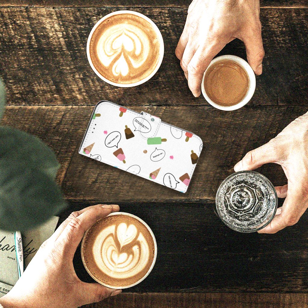 Van dit vrolijke iPhone 12 | 12 Pro (6.1") Book Cover met daarop verschillende soorten ijsjes met tekstwolkjes krijg je sowieso een vrij en zomers gevoel. De zomer komt naar je toe met deze print van ijsjes met tekstwolkjes. Ben je op het strand, dan ontbreekt een lekker ijsje natuurlijk niet. Net zoals je je smartphone bij de hand hebt, met daaromheen een design hoesje met bijzondere ijsjes en tekstwolkjes. Jouw telefoon kan dan de bescherming in de vorm van een boekhoesje met ijsjes zeer goed gebruiken. Alle zijden van dit hoesje worden bedrukt met ijsjes en tekstwolkjes. De case heeft een lipje aan de buitenzijde voor het afsluiten van de telefoon en de houder aan de binnenzijde is van TPU. Onder alle weersomstandigheden zal deze case met verschillende opbergvakjes perfect functioneren, ook op het strand met een ijsje in je hand.