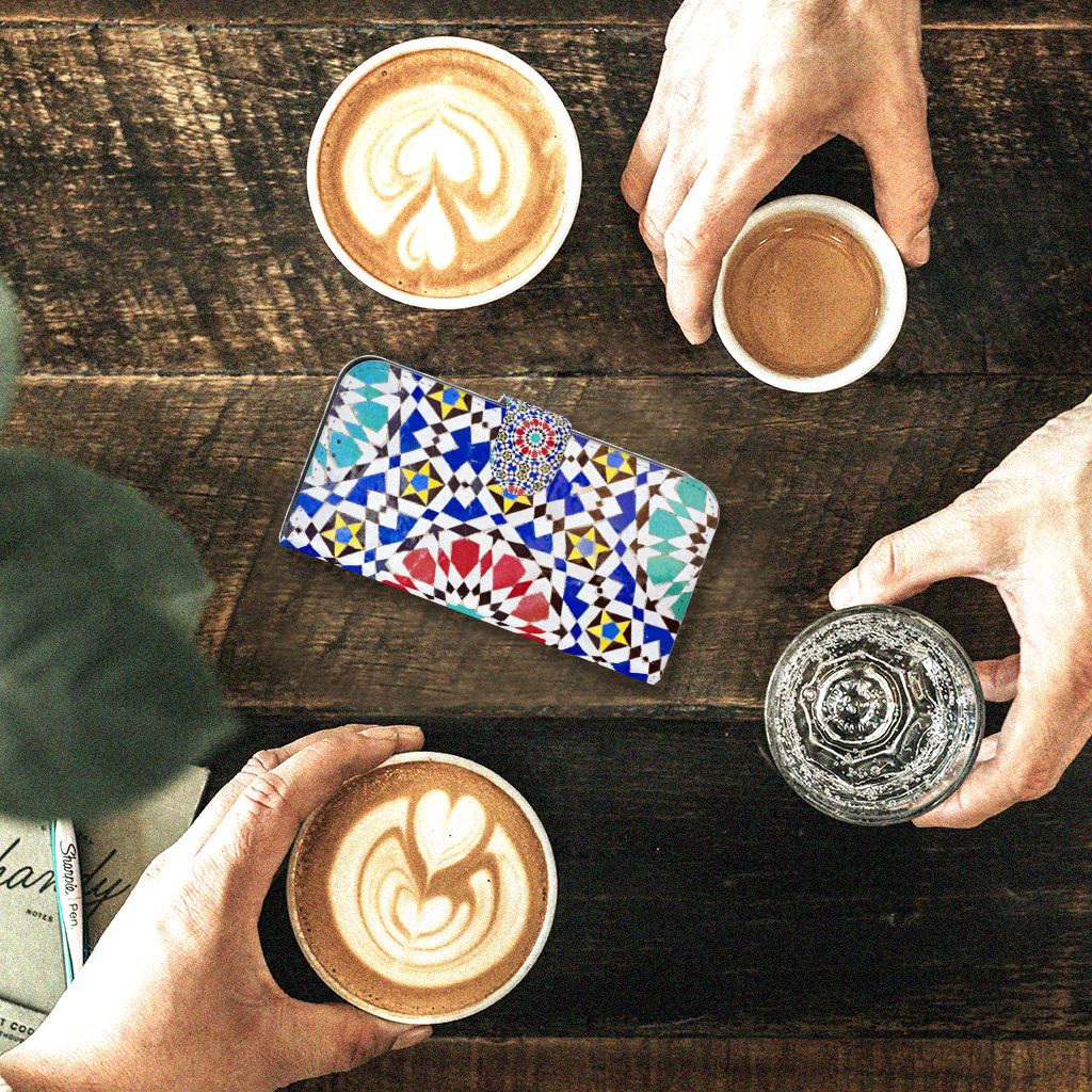 Aan design hoesjes met kunstvormen geen gebrek in onze uitgebreide collectie. Wat dacht je van dit design hoesje met Mozaïek . Dit is een kunstvorm waarbij een grote afbeelding wordt gemaakt uit een groot aantal kleine gekleurde steentjes (tesserae), die in een vloer of wand worden gemetseld. Deze gekleurde steentjes zie je terug op dit boekhoesje met design van mozaïek. Een boekhoesje is zo’n beetje de veiligste case die er bestaat. Een iPhone 12 | 12 Pro (6.1") Bookcase met print zorgt voor een volledige bescherming van je smartphone en wordt aan alle zijden bedrukt met mozaïek. Een deel van de foto’s staat ook op het lipje aan de buitenzijde. Verder is de houder aan de binnenzijde van TPU. De Grieken en Romeinen beheersten de kunst al. Op diverse plaatsen in Europa zijn mozaïeken teruggevonden die tot op de dag van vandaag goed bewaard zijn gebleven. Met een hoesje met mozaïek blijft jouw telefoon in tact. Je pasjes en briefgeld kun je in de vakjes aan de binnenzijde stoppen