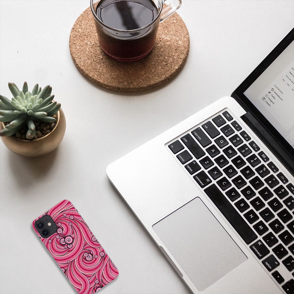 Deze mooie iPhone 12 | 12 Pro (6.1") Hoesje maken met Swirl Pink is een geweldige en duurzame bescherming voor jouw smartphone. De kleuren zijn zeer subtiel op het hoesje gezet en worden op de bovenkant van de case bedrukt. Dit drukwerk doen we in eigen beheer, zodat het roze en het zwart ook uitstekend tot zijn recht komen op de tpu case. Een tpu hoesje is perfect op maat gemaakt en heeft een mooie uitstraling. Daarnaast is de case zeer flexibel en het materiaal is onbreekbaar. De case heeft opstaande randen ter bescherming van het scherm. De randen van het tpu hoesje worden niet in roze met zwart bedrukt. Nergens tref je een hoesje met deze kleuren aan dat zo goed past bij jouw smartphone.