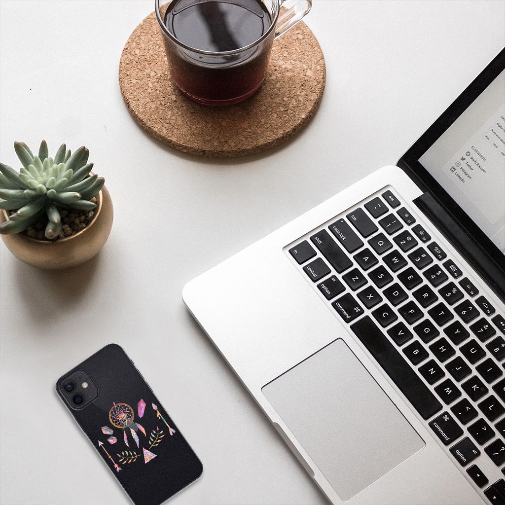 Een dromenvanger werd lang geleden al door een indianenvolk in Noord-Amerika gebruikt om nare dromen te weren. Nu nog hangen mensen over de hele wereld dromenvangers boven hun bed. Maar ook op een telefoonhoesje staat zo’n boho dreamcatcher heel mooi. Dit mooie design dat bestaat uit een tipi, pijlen en dromenvanger heeft veel verschillende prachtige kleuren. Maar omdat het ontwerp minimalistisch en klein is, is het design toch subtiel te noemen. Dit ontwerp staat op een Telefoonhoesje met Naam voor je iPhone 12 | 12 Pro (6.1"). TPU is flexibel en heel erg sterk. Zo is je telefoon aan de achterkant en de randen heel goed beschermd. De case is aan de bovenkant bedrukt, de randen blijven transparant. Het TPU-hoesje is perfect te combineren met een screenprotector, zo zijn je telefoon en je beeldscherm altijd goed beschermd.