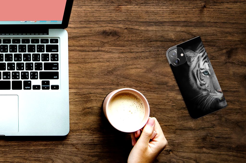 Omdat de Witte Tijger zo bijzonder is, zijn wij bereid deze voor zeer lage kosten op een stand case te zetten. Dit kunnen we zo goedkoop doen omdat we het drukwerk in eigen beheer doen. Witte tijgers leefden lange tijd in de bossen van India, Bangladesh, Nepal, Bhutan en China en kunnen wel 257 kilo wegen. Dit zwaargewicht kunnen we bedrukken op verschillende soorten hoesjes, zoals deze stand cases. Het iPhone 12 | iPhone 12 Pro Hoesje maken is van PU-leer (buitenzijde) en TPU (binnenzijde) en beschikt over een houder voor pasjes en briefgeld. Verder is dit hoesje met witte tijger print voorzien van magneten aan de binnenzijde. Tegenwoordig zijn witte tijgers alleen in gevangenschap te bewonderen. Jij zorgt voor de perfecte bescherming van je smartphone met dit design hoesje met witte tijger.