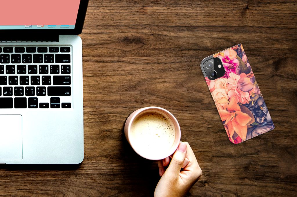 Dit Bosje Bloemen doet een mens en zijn smartphone goed. De oranje, paarse en roze bloemen op deze iPhone 12 | iPhone 12 Pro Smart Cover geven jouw smartphone een zeer sierlijke uitstraling. Je wordt er ook meteen vrolijker van als je aan het appen, mailen of aan het bellen bent. Valt dan je telefoon op de grond, dan zal er dankzij de stand case met oranje, paarse en roze bloemen geen schade ontstaan. Onze stand cases met oranje, paarse en roze bloemen bieden de allerbeste bescherming en zijn heel praktisch, wat blijkt uit onder meer het vakje aan de binnenkant en de handige standaard waarmee je de smartphone rechtop op tafel neer kunt zetten. De oranje, paarse en roze bloemen passen goed op alle zijden van de case. Op deze stand case van leer en TPU (houder aan de binnenkant) is het ook mogelijk je eigen ontwerp te zetten. In no time maak je zelf een stand case met daarop foto’s van jouw favoriete bloemen.