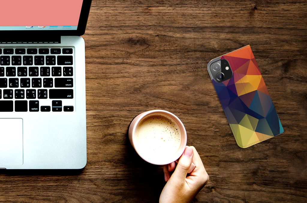Veelkleurige driehoeken die samen eindeloze asymmetrische patronen lijken te vormen. Het is het abstracte schouwspel dat op dit fraaie hoesje voor je iPhone 12 | iPhone 12 Pro direct de aandacht trekt noemen we voor het gemak trekt noemen we voor het gemak Polygon Color. De een ziet er een berglandschap in, de ander piramides. Wat zie jij erin? Zeker is in elk geval dat de aanblik van dit fascinerende ontwerp je niet snel gaat vervelen. Het kleurige spel van lijnen en vlakken blijft eindeloos boeien en geeft jouw Stand Case een hippe en kunstzinnige uitstraling. De kracht die het lijnenspel uitstraalt, komt ook terug in het hoesje zelf. De solide hoes van PU-leer beschikt ook over een 1 pashouder en een speciale standaard. Het hoesje wordt afgesloten met een magneet aan de binnenzijde. De houder aan de binnenzijde is van TPU. Alle zijden worden bedrukt.