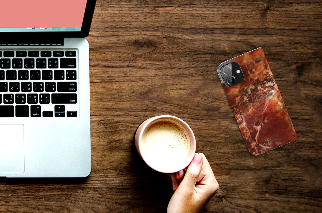 Dit design hoesje met Marmer Bruin is voor de artistieke personen onder ons. De Grieken en Romeinen wisten het al te waarderen door het als bouw- en bekledingsmateriaal toe te passen. Naast het witte Carrara marmer met haar zacht grijze geaderde belijning zijn de diverse soorten in een ruim kleurenpallet te krijgen. We hebben verschillende kleuren op design hoesjes gezet, zoals in dit geval bruin marmer. Dit is een iPhone 12 | iPhone 12 Pro Standcase met marmer in bruine kleur. Het marmer wordt bedrukt op alle zijden van een stand case, die beschikt over 1 vakje voor een pasje en een magnetische sluiting aan de binnenkant. Verder heeft de case een houder van TPU. De rijkheid aan kleuren en varianties in afwerking geeft ontwerpers de vrijheid om met marmer hele mooie architectonische projecten te realiseren. Wij hebben onze ontwerper ook veel vrijheid gegeven. Het resultaat zie je terug in deze stand case met bruin marmer, dat de ideale bescherming voor jouw smartphone biedt.