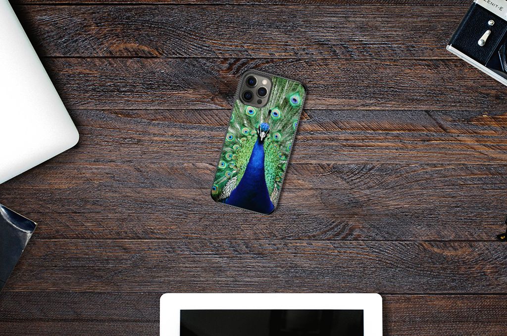 Apple iPhone 12 Pro Max Telefoonhoesje met Pasjes Pauw met Bloemen