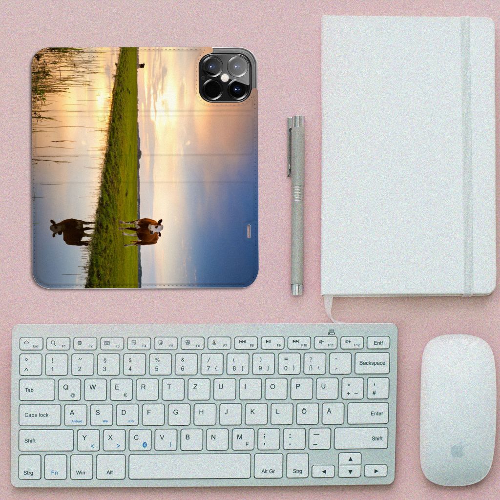 Het levert een idyllisch plaatje op, dit hoesje met een koe en ondergaande zon op de achtergrond. Door een koe buiten te laten lopen en grazen, hebben ze minder kans om ziek te worden. De Koe graast het liefst met soortgenoten, al zijn deze een stukje van de koe op de case verwijderd. Dit levert ook een mooi plaatje op, zoals je kunt zien op dit design hoesje. Deze stand case ziet er strak uit en is voorzien van verschillende uitsparingen. Een iPhone 12 Pro Max Hoesje maken met magneet aan de binnenzijde beschermt jouw smartphone overal. Alle zijden zijn bedrukt. Koeien hebben lange graasperioden nodig, afgewisseld door rust- en herkauwperioden. Zo goed als grazen voelt voor koeien, zo lang zal jouw design hoesje meegaan. De binnenkant van de stand case is van TPU, de buitenzijde van leer.