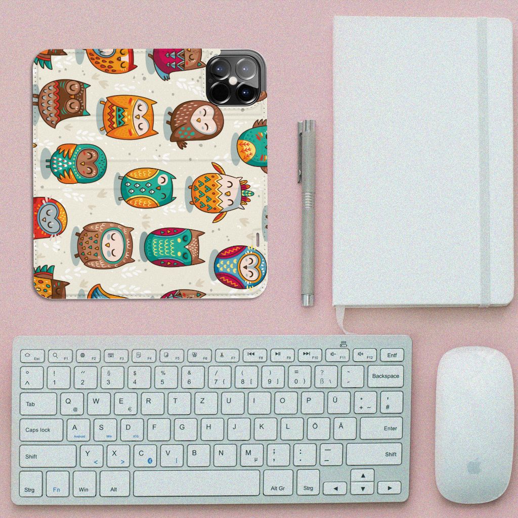 Deze iPhone 12 Pro Max Hoesje maken met Vrolijke Uilen is echt iets voor de nachtbrakers onder ons. De uil is zoals je weet bij uitstek een vogel die in de nachtelijke uren actief is. Ben jij ook iemand die s ’nachts tot leven komt, dan is deze stand case met uilen in felle kleuren echt iets voor jou. Als je tot in de late uurtjes op stap bent, komt het goed uit dat jouw smartphone aan alle kanten goed is beschermd met deze stand case met uilen. De case met uilen heeft een magnetische sluiting aan de binnenkant, waardoor de hoes niet openklapt als die uit je handen valt. Jouw creditcard of pinpas heb je als het goed is veilig opgeborgen in het vakje aan de binnenzijde. De houder aan de binnenzijde van de case met print van uilen is van het flexibele TPU. De wat ruigere types hebben veel baat bij deze stand case met uilen in felle kleuren.