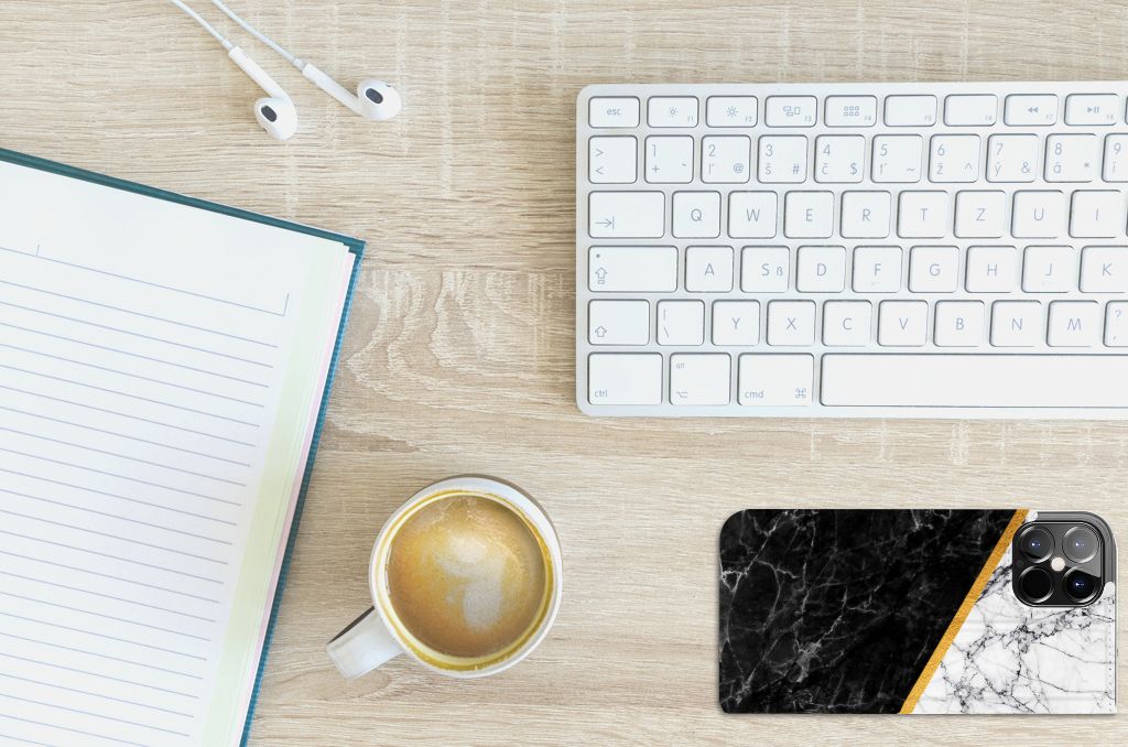 iPhone 12 Pro Max Standcase Marmer Zwart - Origineel Cadeau Vader