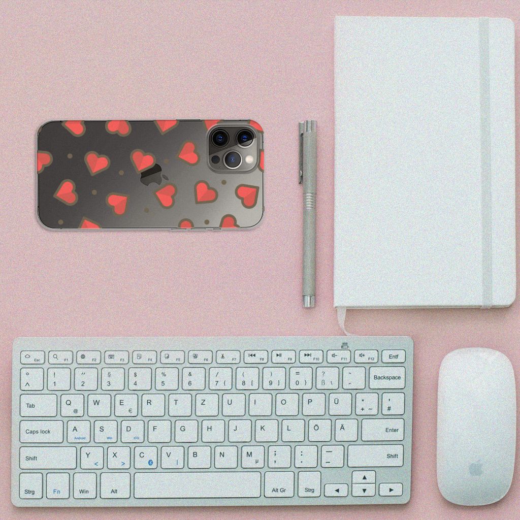 Met deze iPhone 12 Pro Max TPU bumper met hartjes op een grijs met witte achtergrond maak jij een goede beurt als je dit cadeau geeft aan je vriend of vriendin. Bekroon je liefde voor elkaar met deze hele mooie tpu case, die jouw telefoon met name aan de achterkant en zijkanten goed beschermt. Dit is echt een prachtige manier om je telefoon te beschermen. Het tpu hoesje met design met Hearts is ook nog eens zeer praktisch, mede door het buigzame materiaal en de uitsparingen. Als je telefoon met het TPU hoesje uit je hand valt, stuitert het als het ware meteen weer terug in je hand en zal het scherm in tact blijven. De case heeft namelijk opstaande randen aan de voorkant. Alleen de bovenkant van de case wordt bedrukt met hartjes, de zijkanten zijn doorzichtig. Voor een habbekrats is dit hoesje met hartjes op een grijs met witte achtergrond te bestellen.