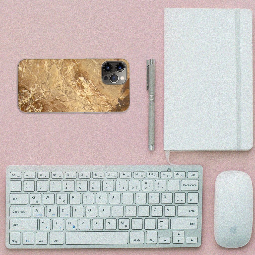 Dit design hoesje met Marmer in lichtbruine kleur is voor de artistiekelingen onder ons. De Grieken en Romeinen wisten het marmer al te waarderen door het in de bouw toe te passen. Naast het witte marmer zijn de diverse soorten marmer in een gevarieerde kleurensamenstelling te krijgen. We hebben verschillende mooie kleuren op design hoesjes gezet, zoals in dit geval het lichtbruine marmer. Dit is een iPhone 12 Pro Max TPU Siliconen Hoesje met marmer in lichtbruine kleur. Het marmer wordt bedrukt op de voorkant van een tpu case, die beschikt over opstaande randen aan de voorkant en heel goed combineert met een screenprotector van glas of van folie. Door de rijkdom aan kleuren en varianties in afwerking kunnen ontwerpers met marmer schitterende architectonische projecten realiseren. Wij hebben hetzelfde gedaan en onze ontwerper veel vrijheid geboden. Het resultaat zie je terug in deze tpu case met lichtbruin marmer, die jouw smartphone goed beschermt. De zijkanten van de case worden niet bedrukt met het lichtbruine marmer.
