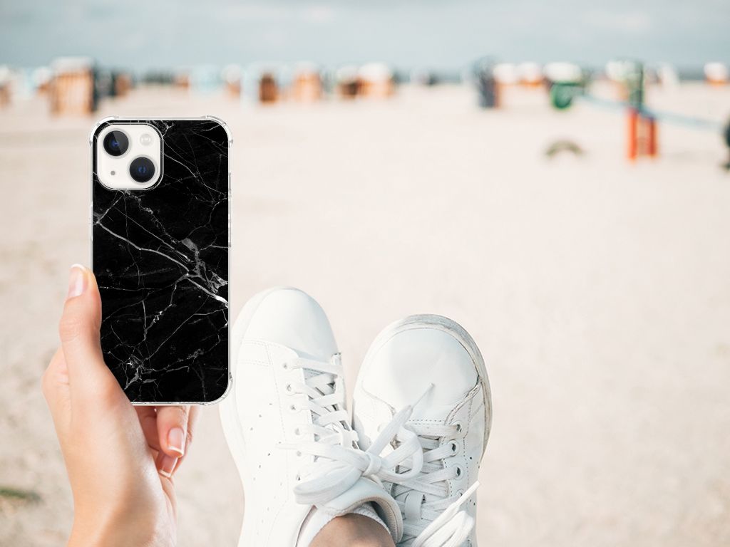 Ben je op zoek naar een uniek telefoonhoesje voor je iPhone 13? Dan ben je bij B2C Telecom aan het juiste adres! Speciaal voor jou hebben we dit prachtige Marmer Zwart design in onze collectie hoesjes opgenomen. Het design wordt bedrukt op een Anti-Shock Hoesje en is gemaakt van flexibel rubber. Het hoesje is perfect voor de actieve smartphonegebruiker door de opstaande randen/hoeken. Denk aan mensen die veel sporten, reizen of wandelen en net iets meer zekerheid willen als het op hun geliefde telefoon aankomt. Het design wordt alleen aan de bovenkant van het hoesje bedrukt en de randen blijven transparant. Aan de zijkanten zijn uitsparingen gemaakt waardoor je met gemak alle knoppen en poorten kunt bedienen. Wij adviseren om dit hoesje in combinatie met een screenprotector te gebruiken voor een langere levensduur van je telefoon. Wil je dit hoesje nog iets extra's geven? Voeg dan gratis je naam of een quote toe! Is dit design hoesje toch niet helemaal wat je zocht? Ontwerp dan zelf een hoesje in ons ontwerpprogramma.