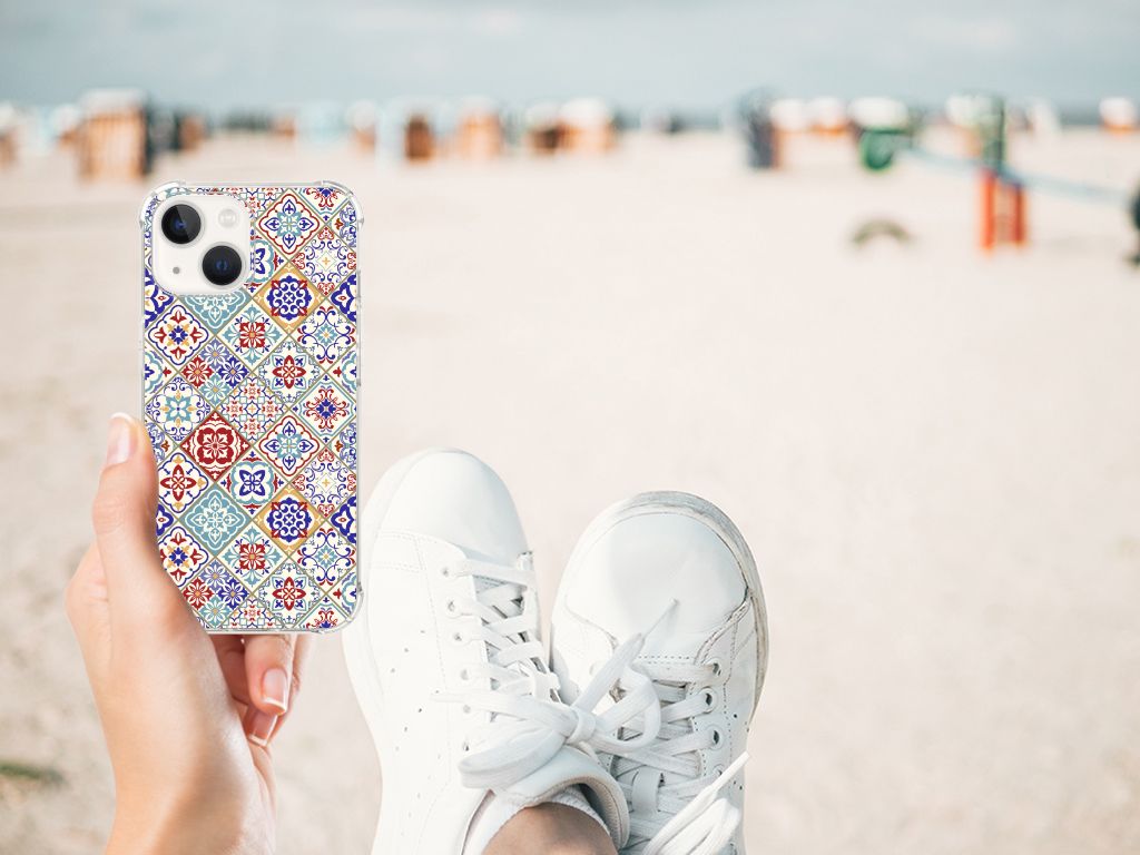 Ben je op zoek naar een uniek telefoonhoesje voor je iPhone 13? Dan ben je bij B2C Telecom aan het juiste adres! Speciaal voor jou hebben we dit prachtige Tiles Color design in onze collectie hoesjes opgenomen. Het design wordt bedrukt op een Anti-Shock Hoesje en is gemaakt van flexibel rubber. Het hoesje is perfect voor de actieve smartphonegebruiker door de opstaande randen/hoeken. Denk aan mensen die veel sporten, reizen of wandelen en net iets meer zekerheid willen als het op hun geliefde telefoon aankomt. Het design wordt alleen aan de bovenkant van het hoesje bedrukt en de randen blijven transparant. Aan de zijkanten zijn uitsparingen gemaakt waardoor je met gemak alle knoppen en poorten kunt bedienen. Wij adviseren om dit hoesje in combinatie met een screenprotector te gebruiken voor een langere levensduur van je telefoon. Wil je dit hoesje nog iets extra's geven? Voeg dan gratis je naam of een quote toe! Is dit design hoesje toch niet helemaal wat je zocht? Ontwerp dan zelf een hoesje in ons ontwerpprogramma.