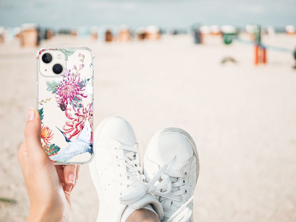 Ben je op zoek naar een uniek telefoonhoesje voor je iPhone 13? Dan ben je bij B2C Telecom aan het juiste adres! Speciaal voor jou hebben we dit prachtige Bird Flowers design in onze collectie hoesjes opgenomen. Het design wordt bedrukt op een Case Anti-shock en is gemaakt van flexibel rubber. Het hoesje is perfect voor de actieve smartphonegebruiker door de opstaande randen/hoeken. Denk aan mensen die veel sporten, reizen of wandelen en net iets meer zekerheid willen als het op hun geliefde telefoon aankomt. Het design wordt alleen aan de bovenkant van het hoesje bedrukt en de randen blijven transparant. Aan de zijkanten zijn uitsparingen gemaakt waardoor je met gemak alle knoppen en poorten kunt bedienen. Wij adviseren om dit hoesje in combinatie met een screenprotector te gebruiken voor een langere levensduur van je telefoon. Wil je dit hoesje nog iets extra's geven? Voeg dan gratis je naam of een quote toe! Is dit design hoesje toch niet helemaal wat je zocht? Ontwerp dan zelf een hoesje in ons ontwerpprogramma.
