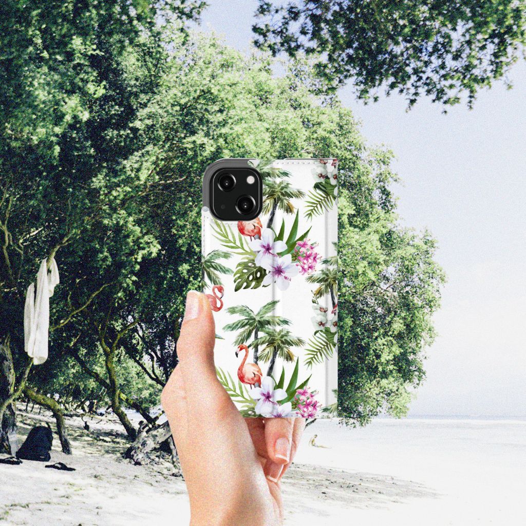 Apple iPhone 13 Telefoonhoesje met Pasjes Flamingo Palms