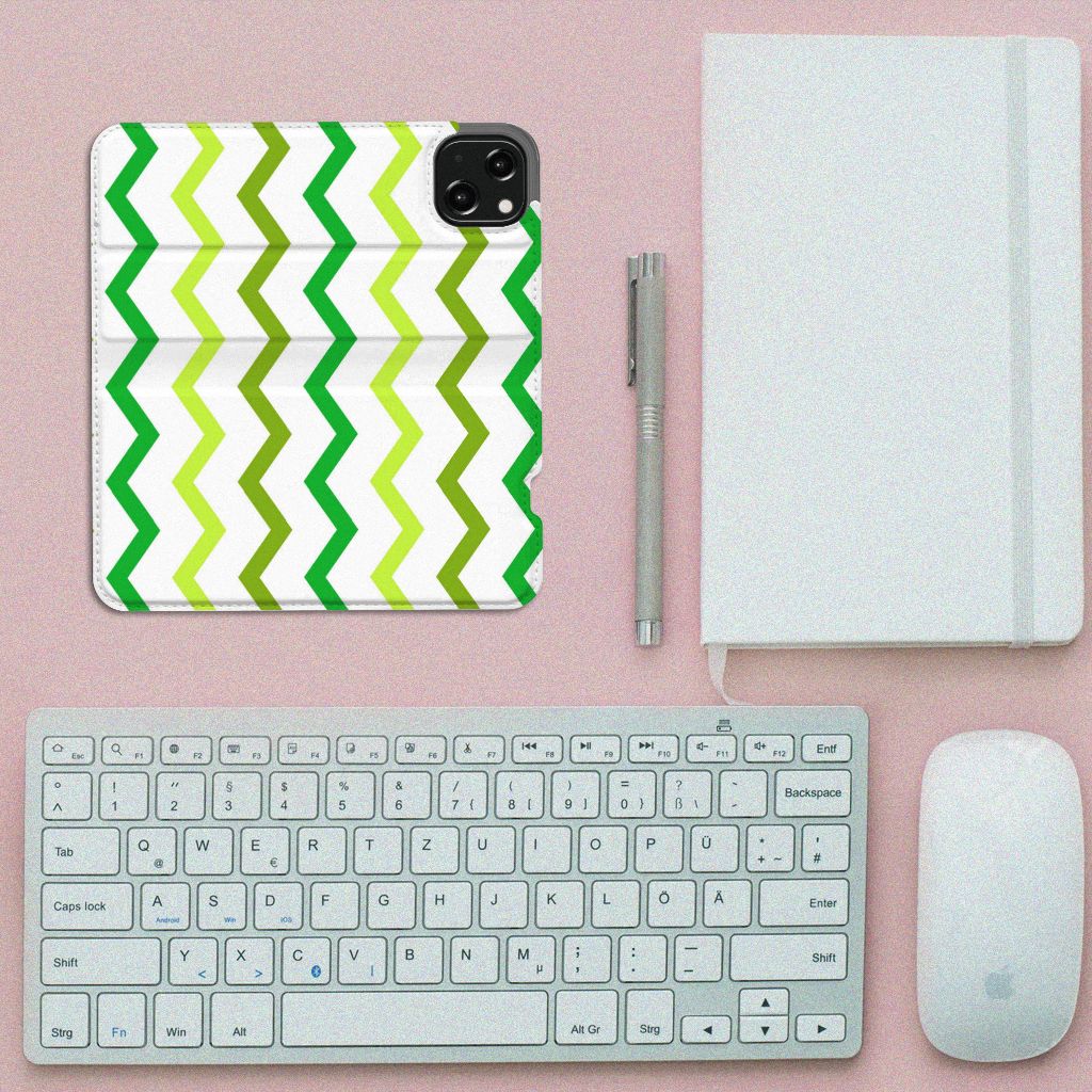 Dit zigzag groen design hoesje is speciaal ontworpen voor jouw telefoon. We hebben bewust verschillende stijlen groen gebruikt, zodat er voldoende sprake is van variatie. Dit groene hoesje ziet er super strak uit. Dat kan ook niet anders, als je weet dat onze designer zijn creativiteit heeft gebruikt. Hij schudt voortdurend nieuwe designs uit zijn mouw en dit zigzag groene hoesje is een van zijn fraaiste creaties. Een heel tof iPhone 13 Hoesje met Magneet, al zeggen we het zelf. Valt dit Zigzag Groen design hoesje goed bij jou? Bestel het dan vandaag nog en je hebt het morgen in huis. Het design staat op een stand case. Deze case beschermt jouw telefoon aan alle kanten en beschikt over een 1 opbergvakje en een speciale standaard. Het hoesje wordt afgesloten met een magneet aan de binnenzijde. De houder aan de binnenzijde is van TPU. Alle zijden van de stand case worden bedrukt.