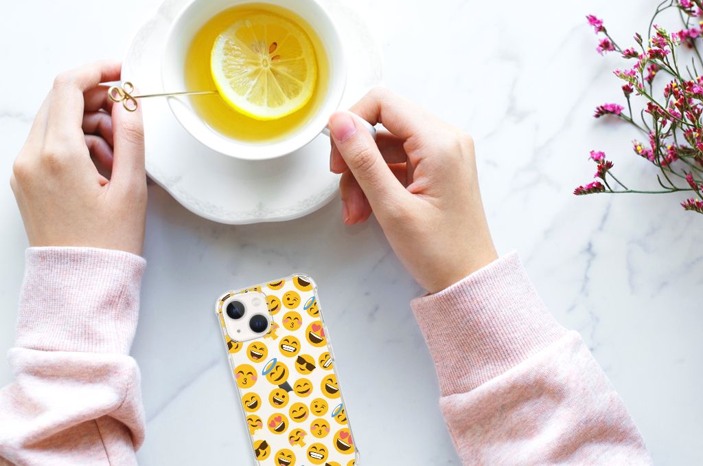 Ben je op zoek naar een uniek telefoonhoesje voor je iPhone 13 mini? Dan ben je bij B2C Telecom aan het juiste adres! Speciaal voor jou hebben we dit prachtige Emoji design in onze collectie hoesjes opgenomen. Het design wordt bedrukt op een Doorzichtige Silicone Hoesje en is gemaakt van flexibel rubber. Het hoesje is perfect voor de actieve smartphonegebruiker door de opstaande randen/hoeken. Denk aan mensen die veel sporten, reizen of wandelen en net iets meer zekerheid willen als het op hun geliefde telefoon aankomt. Het design wordt alleen aan de bovenkant van het hoesje bedrukt en de randen blijven transparant. Aan de zijkanten zijn uitsparingen gemaakt waardoor je met gemak alle knoppen en poorten kunt bedienen. Wij adviseren om dit hoesje in combinatie met een screenprotector te gebruiken voor een langere levensduur van je telefoon. Wil je dit hoesje nog iets extra's geven? Voeg dan gratis je naam of een quote toe! Is dit design hoesje toch niet helemaal wat je zocht? Ontwerp dan zelf een hoesje in ons ontwerpprogramma.