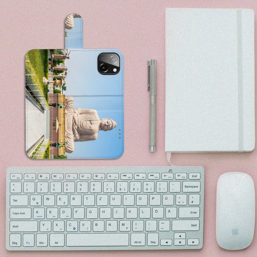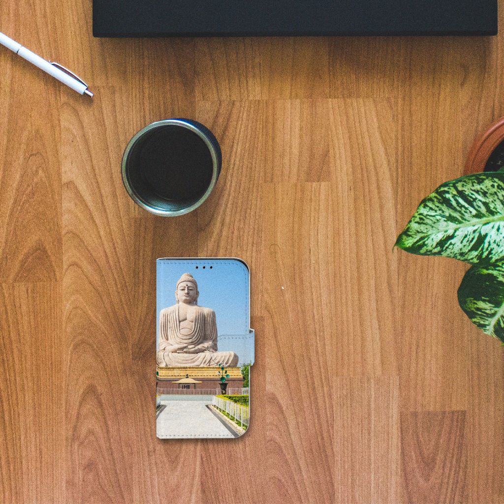 Van dit hoesje met boeddha print word je vanzelf rustig van binnen. Een boeddha staat te allen tijde voor geluk, symbolische genezing, liefde voor de ander, maar ook voor eigenwaarde. Daarnaast staat de boeddha symbool voor eeuwige vriendschap. Boeddhabeelden zie je vooral in tempels, maar tegenwoordig zien we ze ook steeds vaker in huizen en tuinen staan. Een boeddha dient met respect te worden behandeld. Doe dat dus ook met je telefoon. Dat kan met dit hoesje met Boeddha print. De case zorgt ervoor dat jij en je iPhone 13 Mini voor langere tijd in harmonie samen kunnen leven. Het design staat op een Flip Cover. Dit smartphonehoesje beschermt jouw telefoon aan alle zijden en beschikt over verschillende opbergvakjes voor pasjes en briefgeld. De case sluit perfect af met het lipje aan de buitenkant. De houder aan de binnenzijde is van TPU. Alle zijden van het hoesje worden bedrukt, inclusief het lipje.