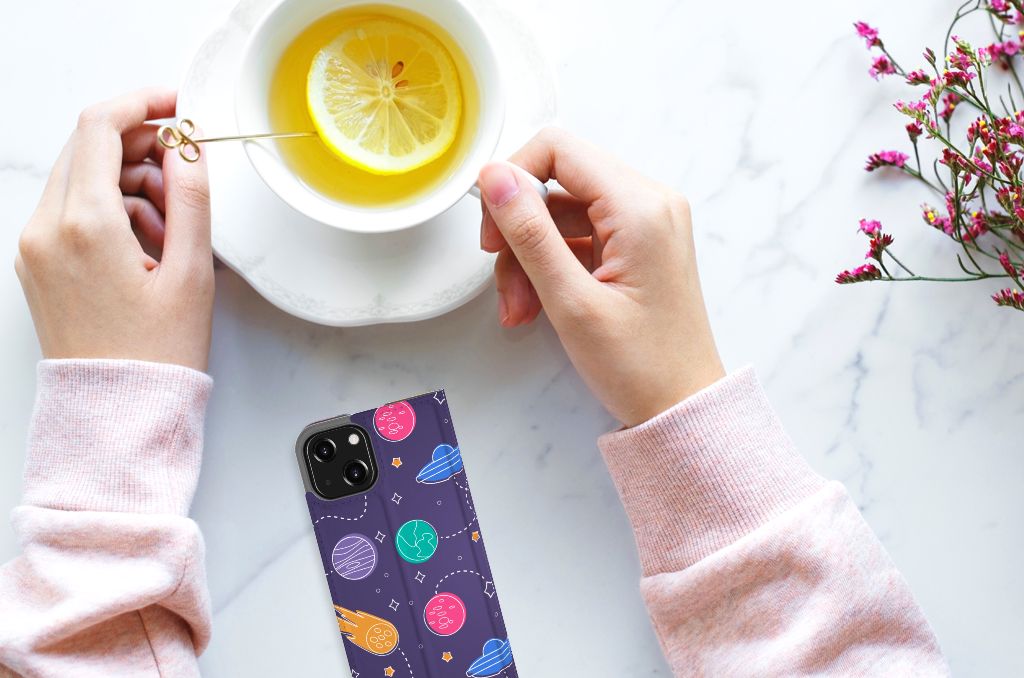 Ben je een beetje geïnteresseerd in buitenaards leven? Dan kan je wel eens enthousiast raken van deze iPhone 13 Mini Hippe Standcase met Space print. Dus mensen die van science fiction houden zullen deze case ongetwijfeld mooi vinden. Er zijn verschillende planeten en vliegende schotels te ontdekken in dit design hoesje. Dit kunstwerkje is voor heel weinig geld te bestellen op onze website. Je krijgt er maximale bescherming van je smartphone voor terug. De stand case beschermt jouw telefoon aan alle kanten en beschikt over een 1 opbergvakje en een speciale standaard. Het hoesje wordt afgesloten met een magneet aan de binnenzijde. De houder aan de binnenzijde is van TPU. Je zult ontdekken dat dit hele stevige telefoonhoesje een heel goede bescherming biedt tegen alle vormen van schade. Met dit hoesje hoef je niet bang te zijn dat er krassen op je design komen of scheuren in je scherm.