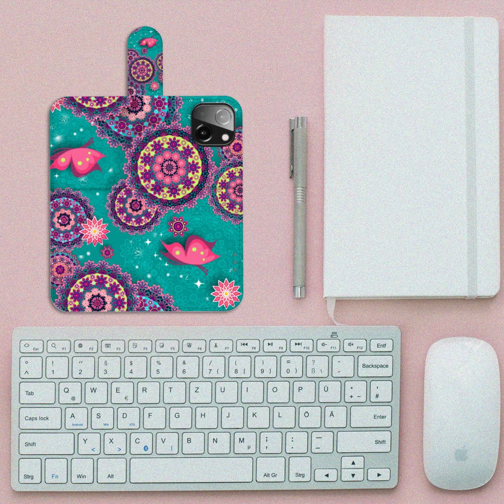 Met deze bookstyle case val jij sowieso op. De vlinders en mandala-achtige cirkels hebben verschillende heldere en opvallende kleuren. Het design op dit iPhone 13 Mini Hoesje heeft bovendien iets hippie-achtigs. De heldere kleuren en patronen worden op dit telefoonhoesje met behulp van onze geavanceerde printer gedrukt. Deze printer kan alle zijden van de bookstyle case bedrukken. Zelfs het magnetische lipje wordt bedrukt met het design van cirkels en vlinders. Dit wordt bovendien uitgevoerd met duurzame inkt, zodat het hele hoesje duurzaam is. Deze bookstyle case zal langer meegaan dan de meeste design hoesjes. Dit is goed voor het milieu en voor jouw portemonnee.