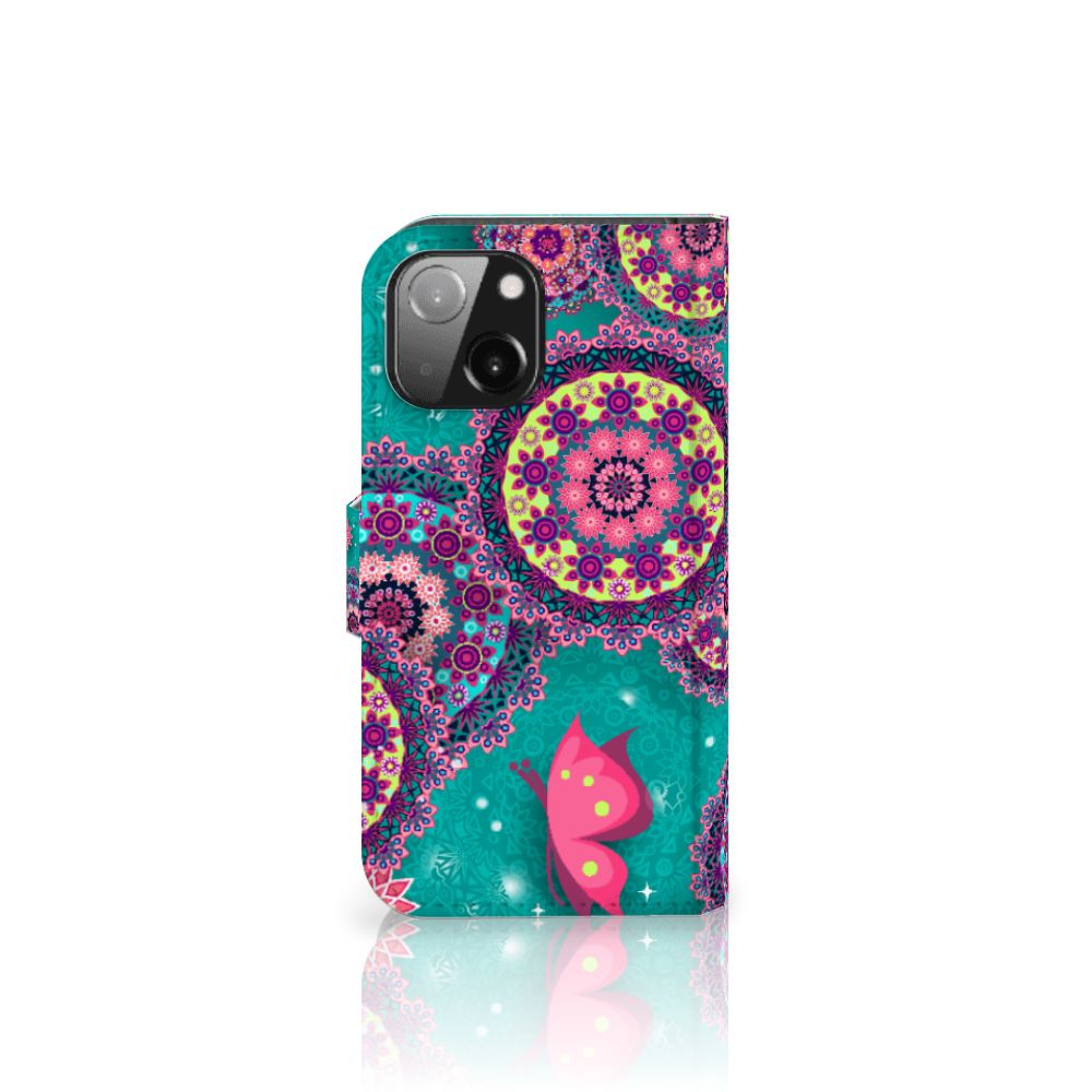 iPhone 13 Mini Hoesje met pasjes Cirkels en Vlinders