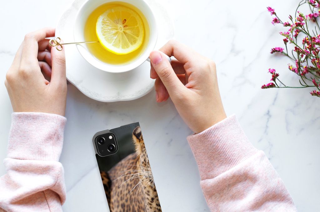 Het luipaard wordt ook wel een panter genoemd en is een sluwe kat. De bruingele vacht met een patroon van rozetachtige vlekken geeft een goede schutkleur. Dit zie je ook op een fraaie manier afgebeeld op dit super stoere hoesje. Mensen die indruk willen maken kopen deze stand case met design van het luipaard. Een iPhone 13 Mini Hoesje maken is van alle markten thuis. Het is praktisch – vanwege onder meer het opbergvakje en de magnetische sluiting aan de binnenzijde – maar beschermt jouw smartphone tevens beter dan welke case ook. Het luipaard is sterk en behendig en misschien typeert jou dat ook wel. Dan past dit hoesje met luipaard uitstekend bij jou. De houder van TPU aan de binnenzijde is net zo sterk als het luipaard. Jouw telefoon is perfect beschermd. De case heeft tevens een standaard.