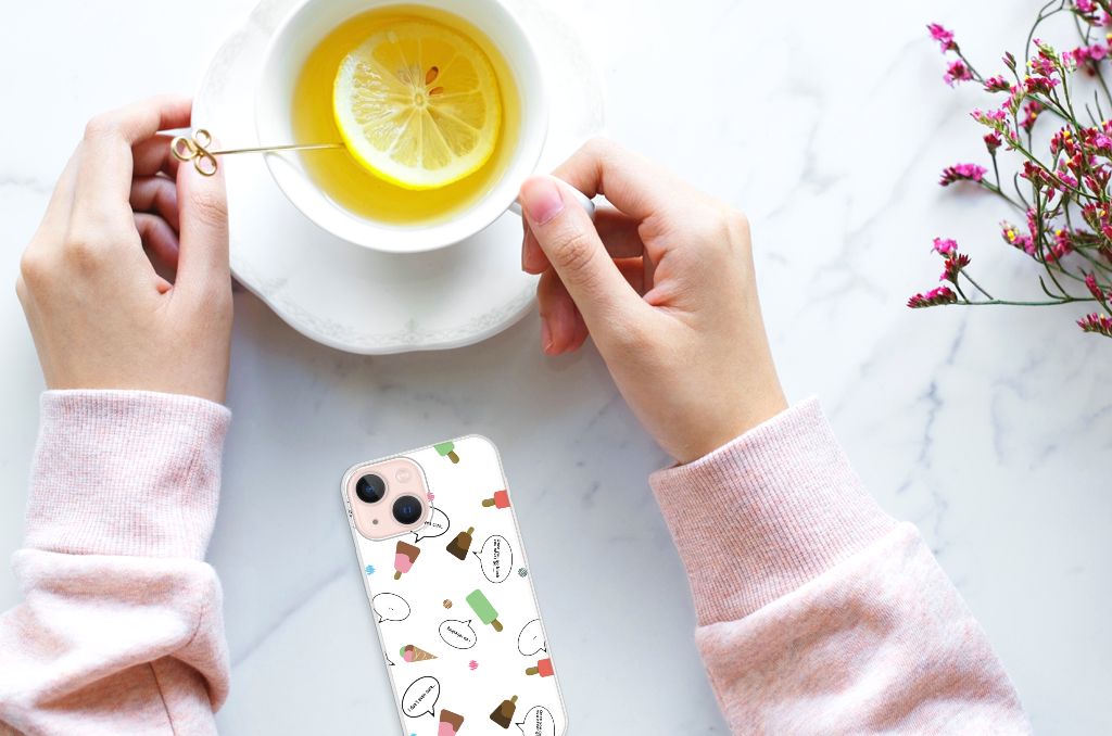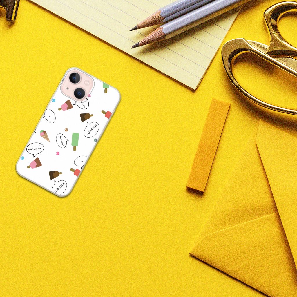 Van deze vrolijke iPhone 13 mini Siliconen Case met daarop verschillende soorten ijsjes met tekstwolkjes krijg je sowieso een vrij en zomers gevoel. De zomer komt naar je toe met deze print van ijsjes met tekstwolkjes. Ben je op het strand, dan ontbreekt een lekker ijsje natuurlijk niet. Net zoals je je smartphone bij de hand hebt, met daaromheen een design hoesje met bijzondere ijsjes en tekstwolkjes. Jouw telefoon kan dan de bescherming in de vorm van een tpu hoesje met ijsjes zeer goed gebruiken. De bovenkant van dit hoesje wordt bedrukt met ijsjes en tekstwolkjes, de zijkanten blijven doorzichtig. De case is gemaakt van schokabsorberend materiaal en past altijd in je broekzak. Onder alle weersomstandigheden zal deze TPU case perfect functioneren, ook in de zomer met een ijsje in je hand.