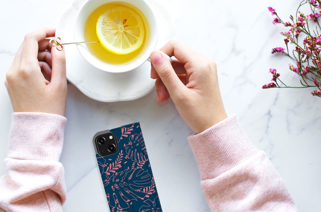 Je voelt je verbonden met de natuur als je kiest voor deze iPhone 13 Mini Smart Cover met print van roze bladeren op een blauwe achtergrond. De print bestaat uit verschillende roze bladeren en dit zorgt voor een fraai decoratief geheel. Met dit patroon van roze bladeren op een blauwe achtergrond creëer je een opvallende uitstraling voor jouw smartphone. Jij doet er verstandig aan om je telefoon te beschermen met dit design hoesje met roze bladeren op een blauwe achtergrond, die staan op een stand case. Dit hoesje kenmerkt zich onder meer door het handige vakje aan de binnenzijde en de magnetische sluiting aan de binnenzijde. Voel jij jezelf happy bij een beeld van roze bladeren op een blauwe achtergrond, dan is deze stand case met print een uitstekende optie. Het beschermt jouw telefoon aan alle zijden. Het TPU aan de binnenzijde klemt zich perfect om jouw smartphone.