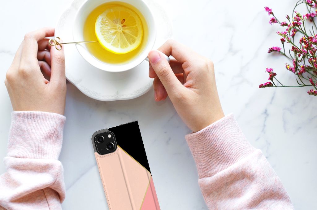 iPhone 13 Mini Print Stand Case Zwart Roze Vormen